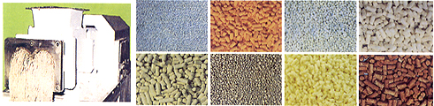 概 述 在固體粉料與液體共存并以固相為主的分散體中,利用分散體的自粘性(或外加粘結劑),通過強制方式(如擠壓、重力、離心力、機械力、氣流沖力等)使固體粉料基本微粒相互粘接、增大。并形成一定形狀和粒度均勻,集中的顆粒群。 濕法造粒成套裝置主要由混合(捏和)、造粒、干燥及其輔助系統設備組成。粉料經混合(捏和)后,進入造粒機形成所需粒度的含濕產品,經干燥得到顆粒狀成品,從而實現造粒的目的。 SET型雙螺桿擠出造粒機分前出料式和側出料式,前出料式造粒直徑一般在1.5-12mm之間選擇,側出料式造粒直徑一般在0.7-2.0之間選擇顆粒形狀為圓柱狀,成粒率≥95%。 技 術 參 數